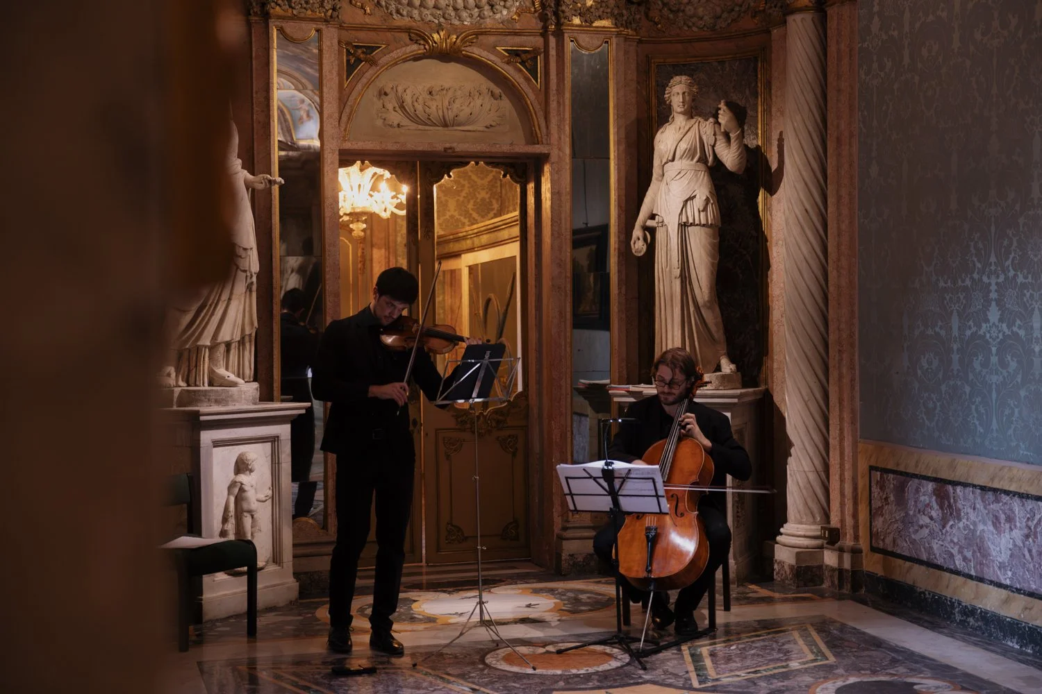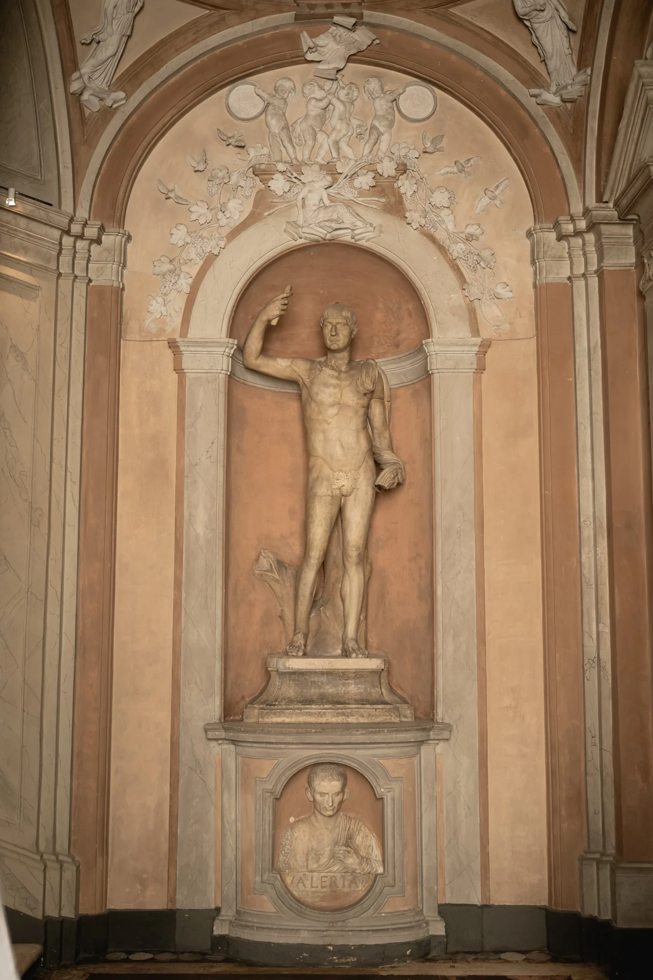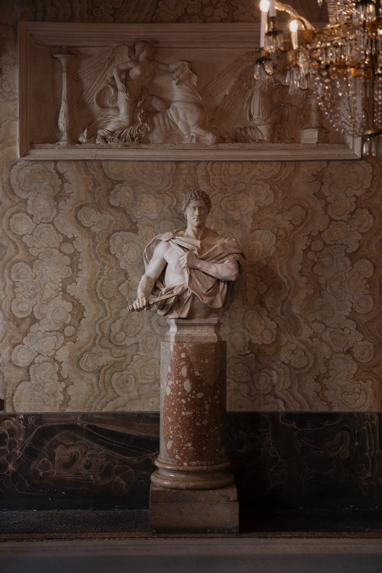 Every surface speaks his vision: the floors inlaid with rare marbles, the frescoed vaults rich with family symbols and iconography, the micro-mosaics of impossible delicacy, the collection of Roman statues standing sentinel in quiet grace...