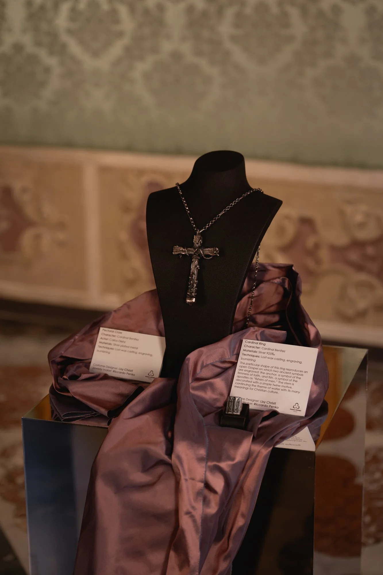 My deepest gratitude goes to the Paolo Penko family, who entrusted this project with their extraordinary collection of ecclesiastical jewellery, crafted for the multi-award-winning movie Conclave [2024 - Directed by Edward Berger] under the visionary guidance of our guest of honour, the acclaimed costume designer Lisy Christl. After a great success in the US, the film ‘Conclave’, inspired by the novel by Robert Harris, arrived in Italian cinemas on 19 December 2024 [First presented at the Rome Cinema Festival in October 2024] with an extraordinary cast including Ralph Fiennes, Stanley Tucci, John Lithgow, Isabella Rossellini and Sergio Castellitto.